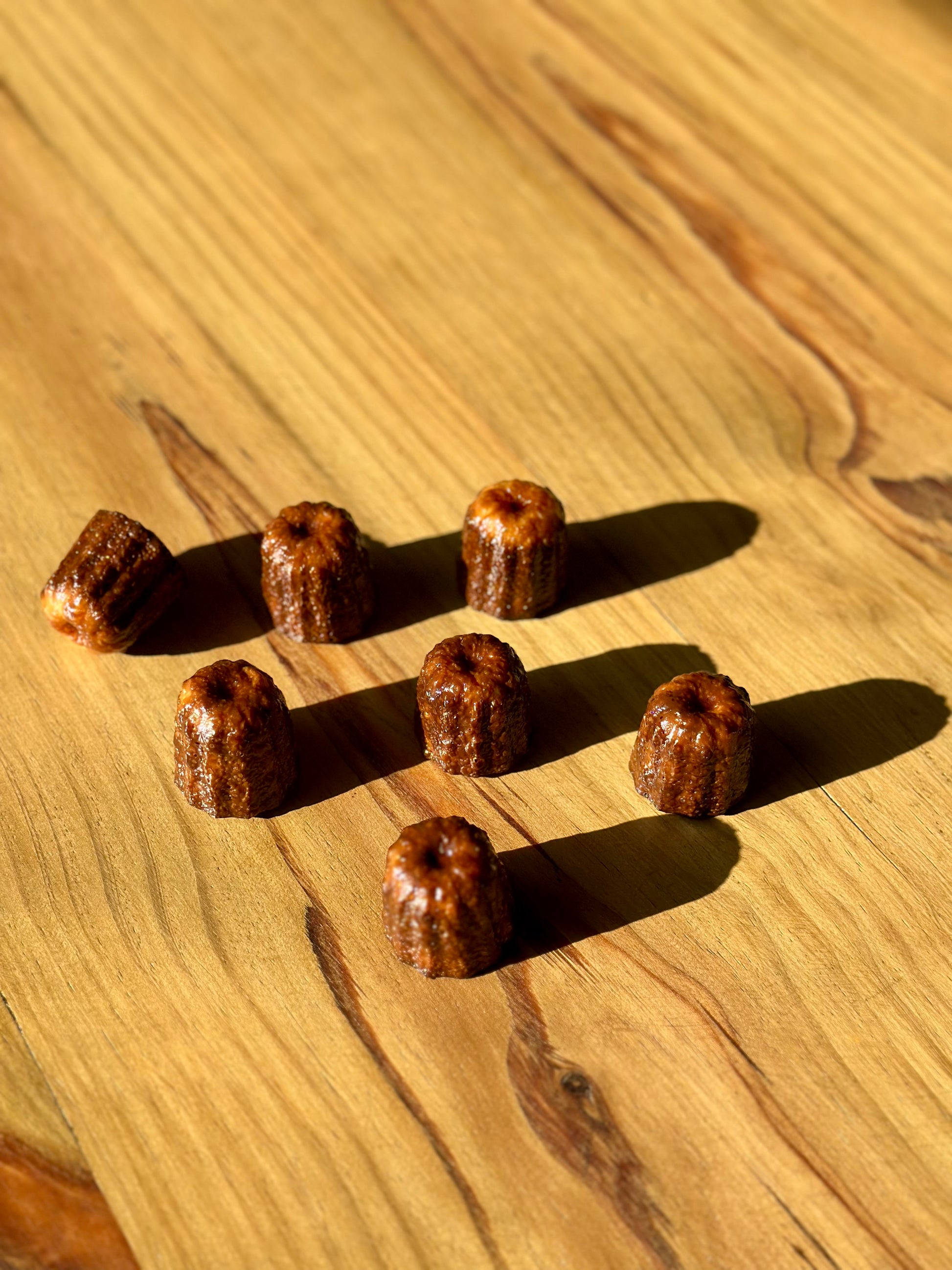Take a journey to the heart of France with our artisanal cannelés! Baked to perfection in copper molds imported from Bordeaux, each cannelé features a delicately caramelized crust that conceals a soft, vanilla-infused custardy interior finalized with a rum twist.